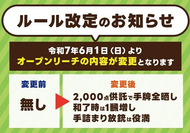 チュッす‼️倍満おじさんです😄 トライアングルにオープンリーチが追加されました❗️ お客様に大変好評です✨ 皆様のご来店をお待ちしております♪